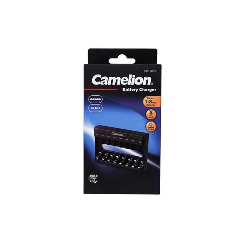 این شارژر از برند با کیفیت کملیون میباشد .دارای چراغ نمایشگر شارژ کامل به رنگ سبز و عدم شارژ کامل به رنگ قرمز و مشکلات باتری بصورت چشمک زن میباشد . همزمان قابلیت شارژ ۸ باتری قلمی یا نیمه قلمی رادارد . منبع تغذیه آن شارژر ۵ ولت ۲ امپر گوشی های موبایل با سوکت تایپ سی بوده و همچنین قابلیت کارکرد با پاوربانک و شارژر گوشی مخصوص خودرو را نیز دارا میباشد . بنابراین در نبود برق نیز میتوان از طریق پاوربانک از ان استفاده کرد .