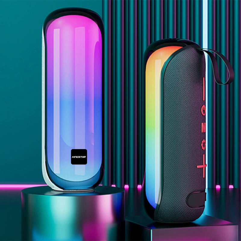 اسپیکر بلوتوثی قابل حمل مدل KBS165 از محصولات جدید کمپانی کینگ استار است. از جمله ویژگیهای بصری این اسپیکر میتوان به بدنه پلاستیکی به ابعاد 248*80*80 میلیمتر و وزن 718 گرمی در کنار نوپردازی RGB آن اشاره کرد. این ابعاد در کنار بند موجود در پشت اسپیکر موجب شده تا این محصول تبدیل به یک کالای قابل حمل و جذاب شود. در قسمت کناری این اسپیکر 5 دکمه بزرگ تعبیه شده که شامل دکمه خاموش و روشن، کاهش و افزایش صدا، تغییر مود و تغییر نورپردازی است. همچنین در قسمت پشتی آن با کنار زدن پوشش لاستیکی، درگاه Type-C جهت شارژ اسپیکر و ورودی های کارت حافظه MicroSD (با فرمت FAT32)، درگاه USB (با فرمت FAT32) و جک 3.5 میلی متری را مشاهده خواهید نمود. KBS165 در یک رنگ مشکی، دارای 10 مدل نورپردازی متفاوت نیز میباشد. در تشریح ویژگی های داخلی محصول، میتوان به وجود 2 بلند گوی 5 واتی (در مجموع 10 وات توان خروجی) با قطر 52 میلی متر و مقاومت 4 اهمی اشاره کرد. همچنین بلوتوث نسخه 5.3 با محدوده عملکرد 10 متر، امکان استفاده از این تکنولوژی در فضای باز را به ما میدهد. وضوح صدای پویا و شفاف در بخش عقب اسپیکر هنگام پخش موسیقی، توجه هر کاربری را به خود جلب میکند. وجود میکروفون و قابلیت مکالمه از طریق اسپیکر از دیگر ویژگی های این محصول میباشد. مدت زمان پخش اسپیکر با صدای 50 درصد بیش از 8 ساعت بوده و مدت زمان مورد نیاز جهت شارژ اسپیکر از صفر تا صد حدود 4 ساعت میباشد. منبع انرژی این کالا باتری لیتیوم پلیمری 3.7 ولت 3000 میلی آمپری است. فناوری True Wireless Stereo یا به اختصار TWS یک راه ارتباطی بر پایه فناوری بلوتوث است که امکان برقراری اتصال بدون سیم را فراهم کرده است و از آن طریق میتوان صدایی Stereo با دو کانال صوتی چپ و راست را پخش کرد. این قابلیت در اسپیکر KBS165 موجب پرطرفدار شدن آن شده است. جهت فعال سازی قابلیت TWS به دفترچه راهنما همراه محصول مراجعه شود. در نگاه تخصصی تر، این اسپیکر با نسبت سیگنال به نویز 90 دسی بل و پاسخ فرکانسی 120Hz-20KHz از اسپیکر های با کیفیت بازار به شمار میآید. همچنین میزان حداکثر ورودی شارژ آن 5V/0.5A است.
